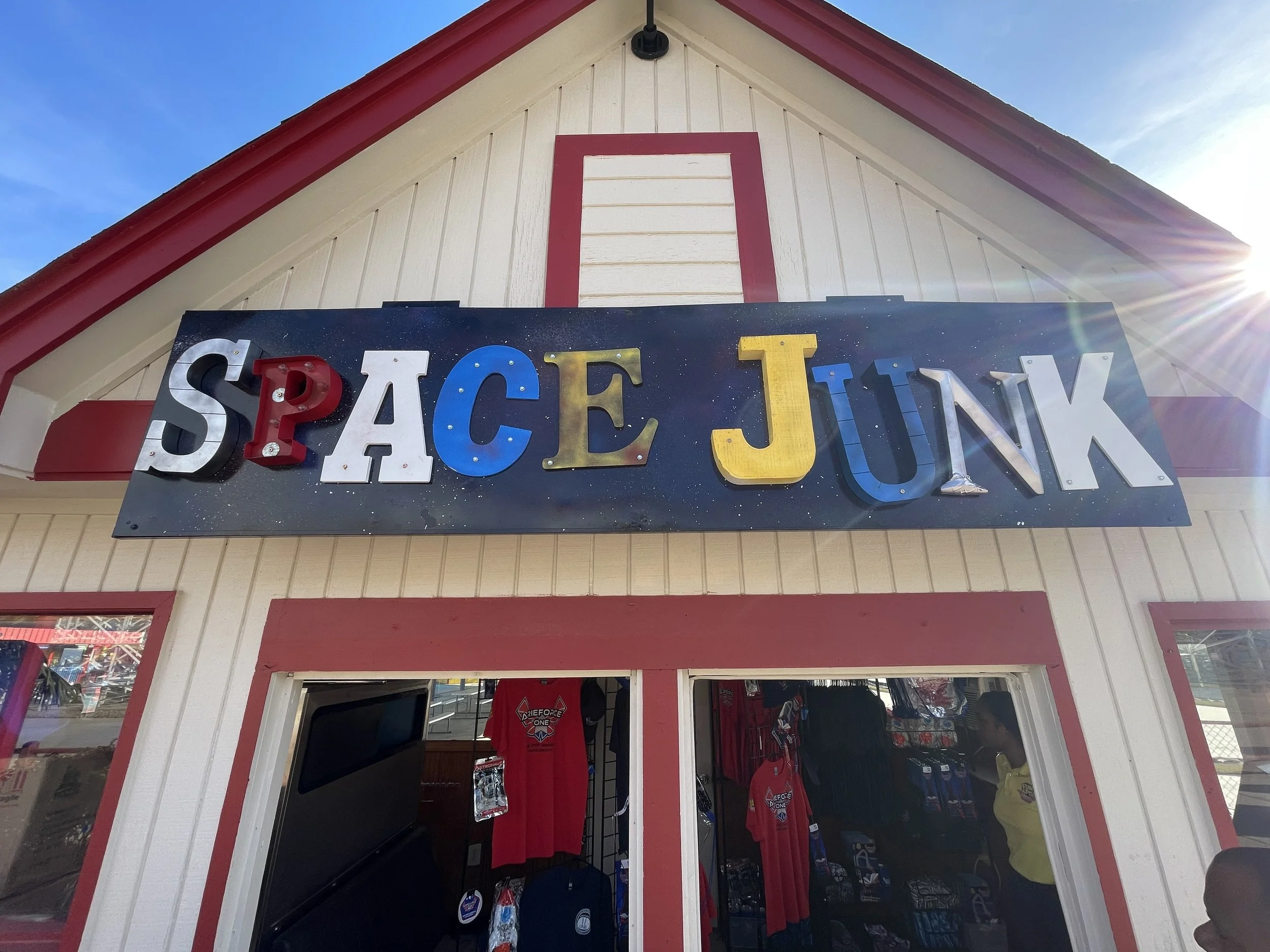Along with the creative director I designed what drove the look and feel to the new attraction just outside of Atlanta, including all of the signage, prop work, and experiential design throughout the two story ride queue building.